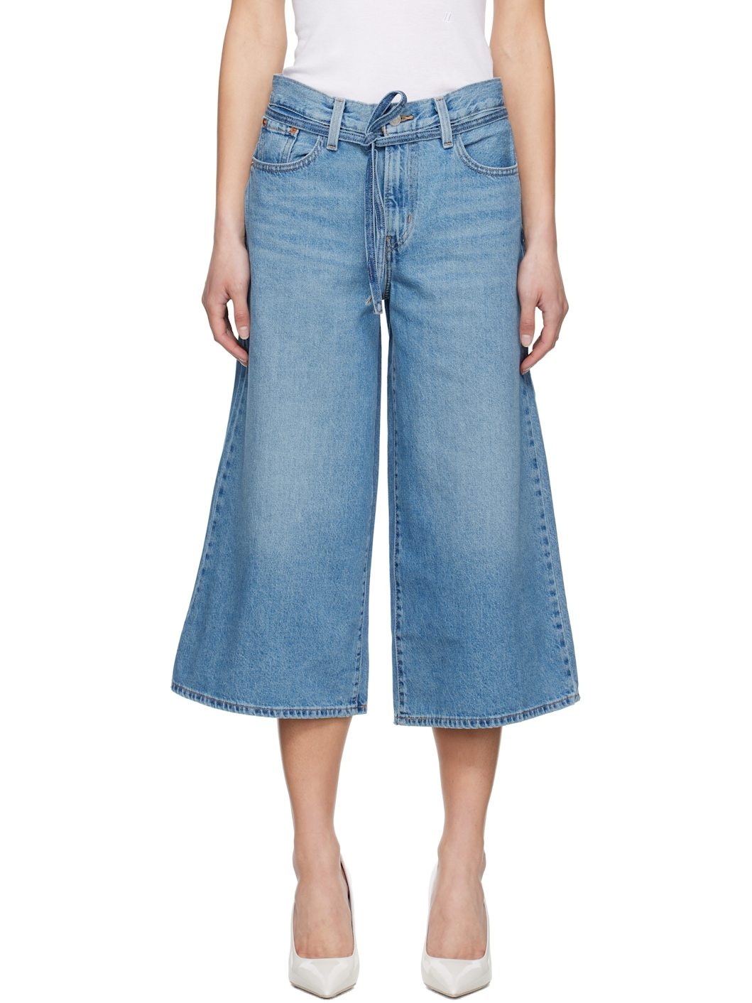 Oversized wide-leg non-stretch denim jeans. Fading and whiskering throughout. · Mid-rise · Belt loops · Detachable self-tie belt · Five-pocket styling · Zip fly · Cropped flared legs · Leather logo patch at back waistband · Logo flag at back pocket · Logo-engraved silver- and copper-tone hardware · Contrast stitching in tan Supplier color: Hot and cold 100% cotton. Made in Sri Lanka 251099F069064