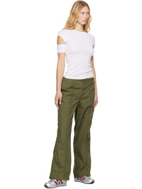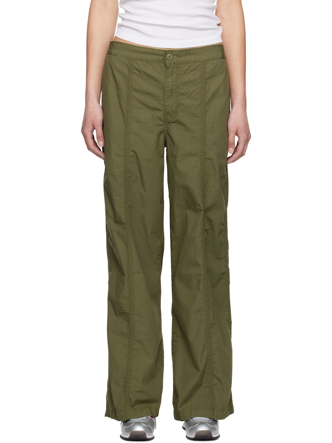 Loose-fit cotton poplin trousers. · Logo flag at partially elasticized waistband · Two-pocket styling · Zip fly · Central seam at front and back legs Supplier color: Ivy green 100% cotton. Made in Cambodia 251099F087007