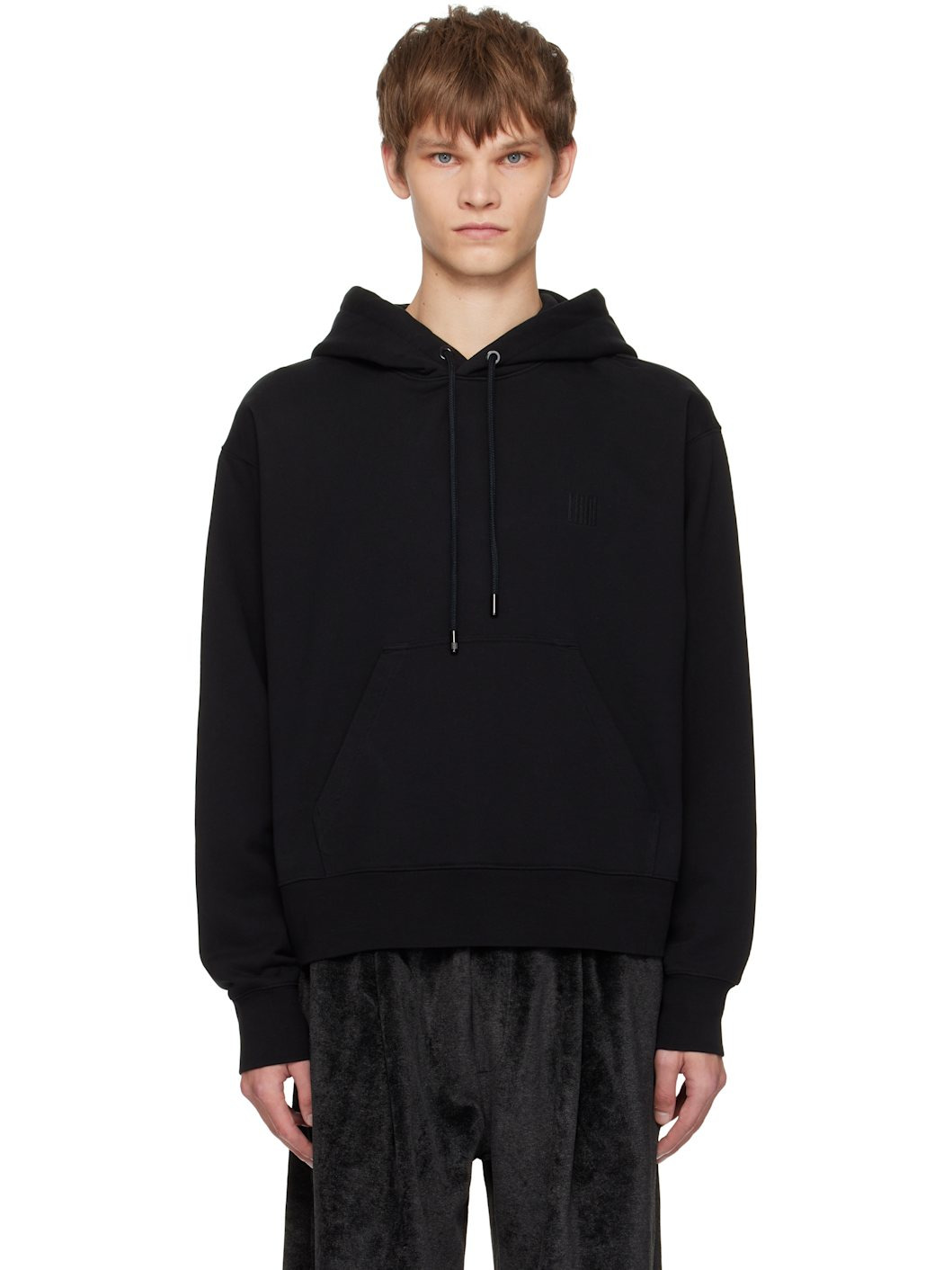 French terry hoodie. · Drawstring at hood · Logo embroidered at chest and back · Kangaroo pocket · Rib-knit hem and cuffs Supplier color: Black Body: 100% cotton. Trim: 97% cotton, 3% elastane. Made in Portugal 252617M202000