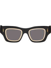 Square acetate-frame sunglasses. · Gray lenses · 100% UVA/UVB protection, category 3 · Gold-tone metal rims · Integrated nose pads · Hardware at face · Inset logo at temples · Logo graphic etched at temple tips · Gold-tone hardware · Includes pouch · Size: 54.16 145 Supplier color: Shiny black/Brown Acetate. Made in Italy 252677M134016