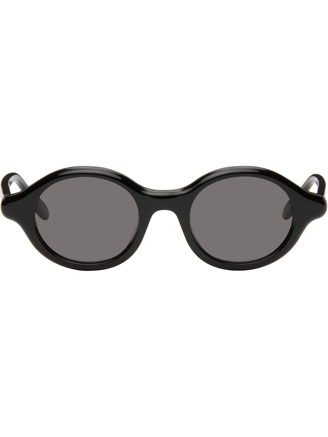 Round acetate-frame sunglasses. · Gray lenses · 100% UVA/UVB protection, category 3 · Integrated nose pads · Inset logo at temples · Includes pouch · Size: 48.21 140 Supplier color: Black Acetate. Made in Italy 252677F005013