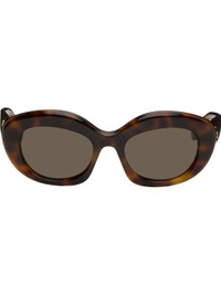 Cat-eye semi-transparent tortoiseshell acetate-frame sunglasses. · Brown lenses · Integrated nose pads · Logo hardware at temples · Exposed core wires · Includes pouch · Size: 51.20 140 Supplier color: Dark Havana/Brown Acetate. Made in Italy 252677F005067