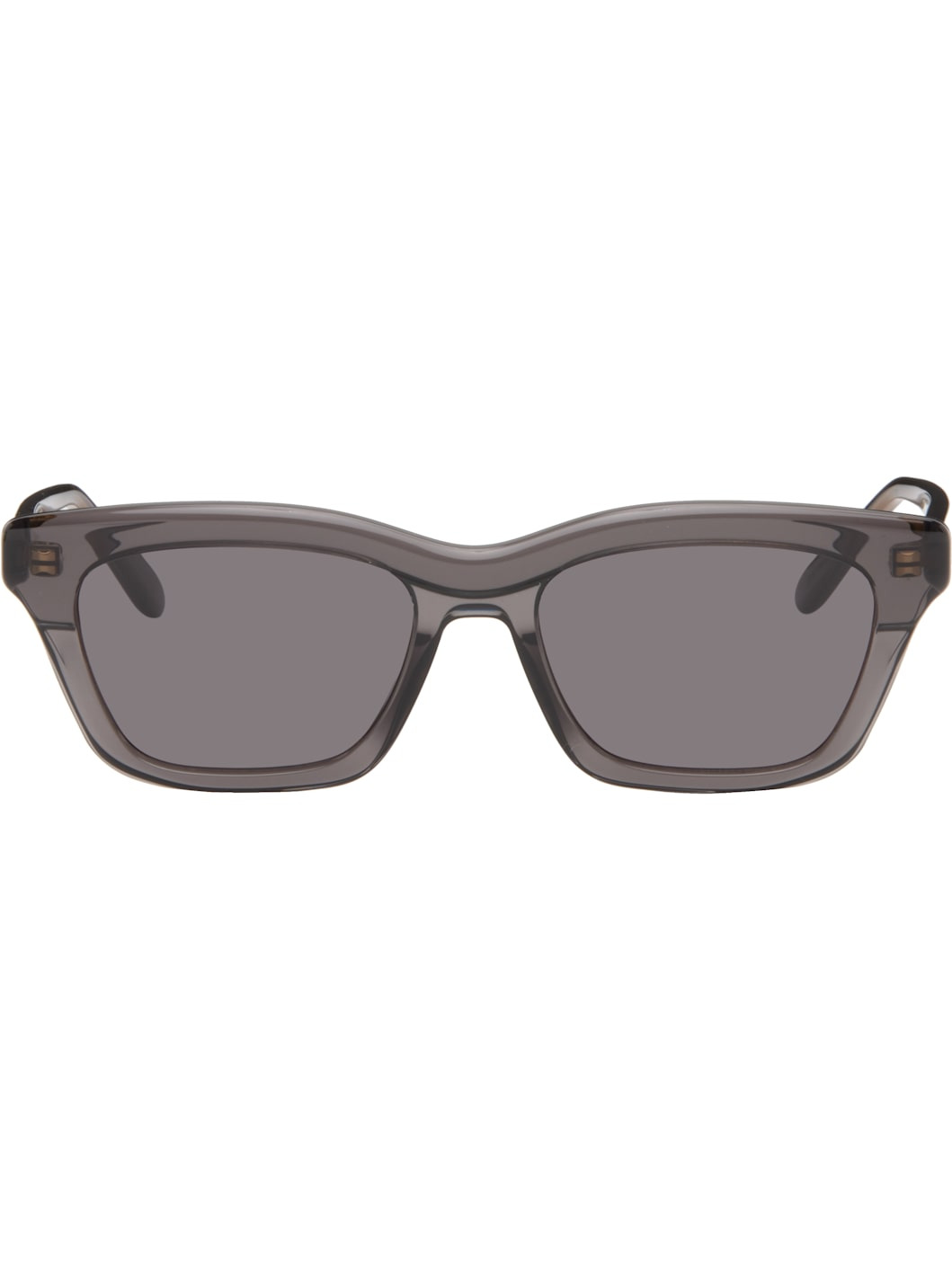 Rectangular transparent acetate-frame sunglasses. · Gray lenses · 100% UVA/UVB protection, category 3 · Integrated nose pads · Inset logo hardware at temples · Exposed core wires · Includes pouch · Size: 53.18 140 Supplier color: Grey/Other/Smoke Acetate. Made in Italy 261677M134051