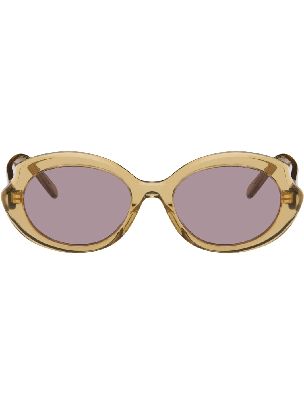 Cat-eye transparent acetate-frame sunglasses. · Brown lenses · 100% UVA/UVB protection, category 2 · Integrated nose pads · Logo stamp at temples · Exposed core wires · Includes pouch · Size: 54.20 140 Supplier color: Shiny dark green Acetate. Made in Italy 252677F005087
