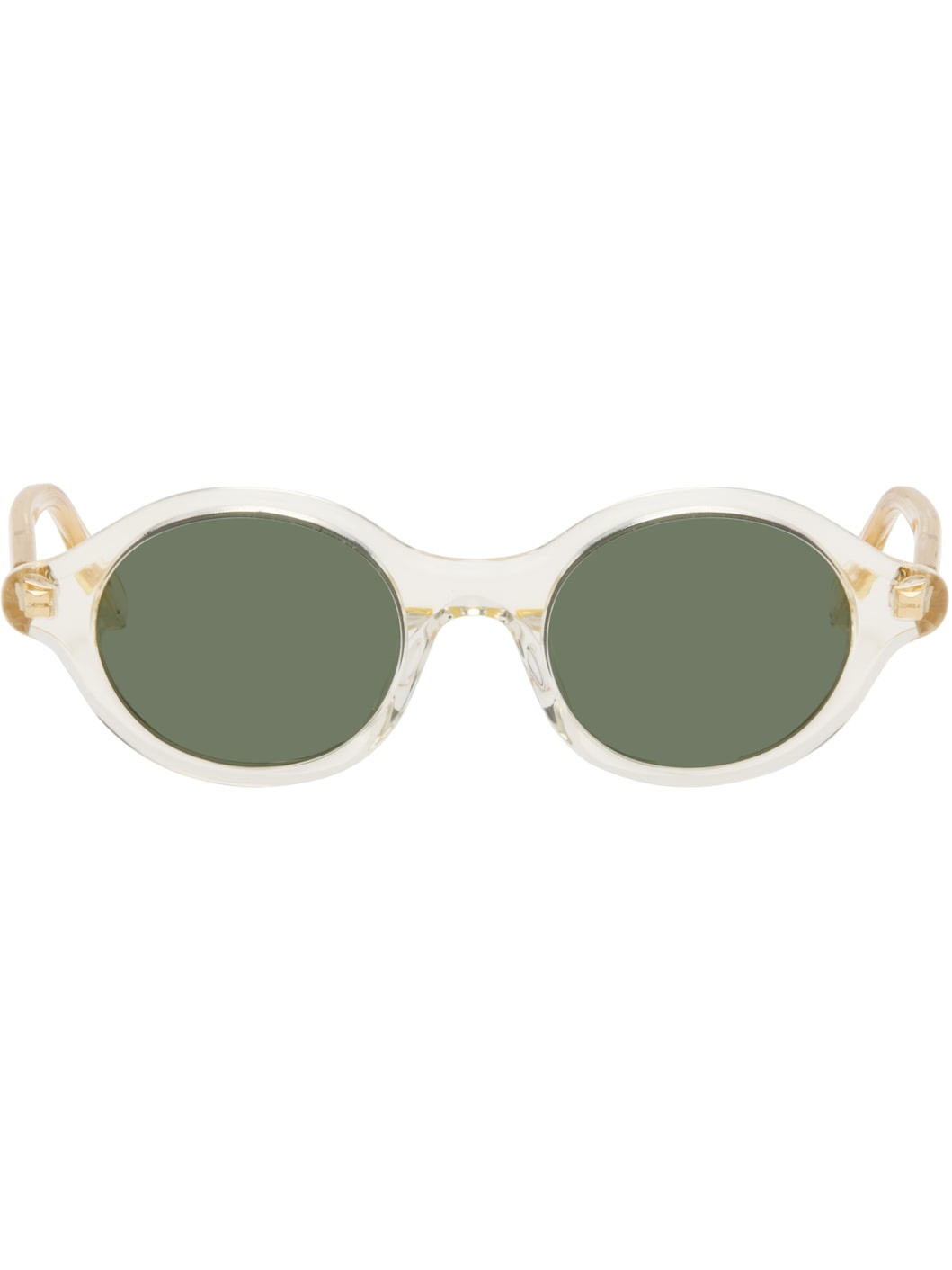 Oval transparent acetate-frame sunglasses. · Green lenses · 100% UVA/UVB protection, category 3 · Integrated nose pads · Inset logo at temples · Exposed core wires · Gold-tone hardware · Includes pouch · Size: 48.21 140 Supplier color: Champagne Acetate. Made in Italy 252677M134022