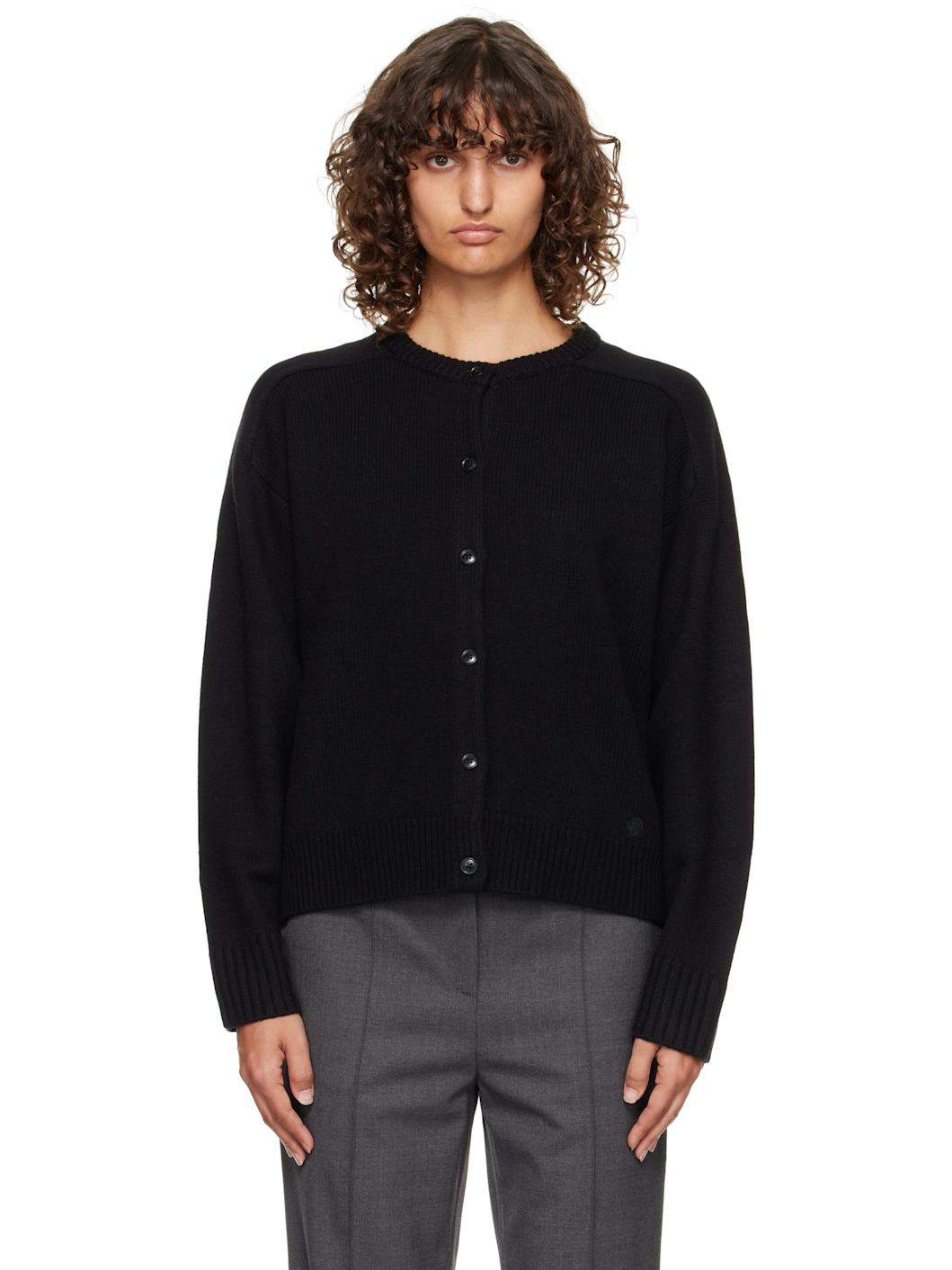 Knit extrafine merino wool- and cashmere-blend cardigan. · OEKO-TEX® STANDARD 100-certified · Rib-knit crewneck, hem, and cuffs · Button closure · Logo embroidered at front hem · Dropped saddle shoulders Supplier color: Black 90% extrafine merino wool, 10% cashmere. Made in Italy 252473F095003