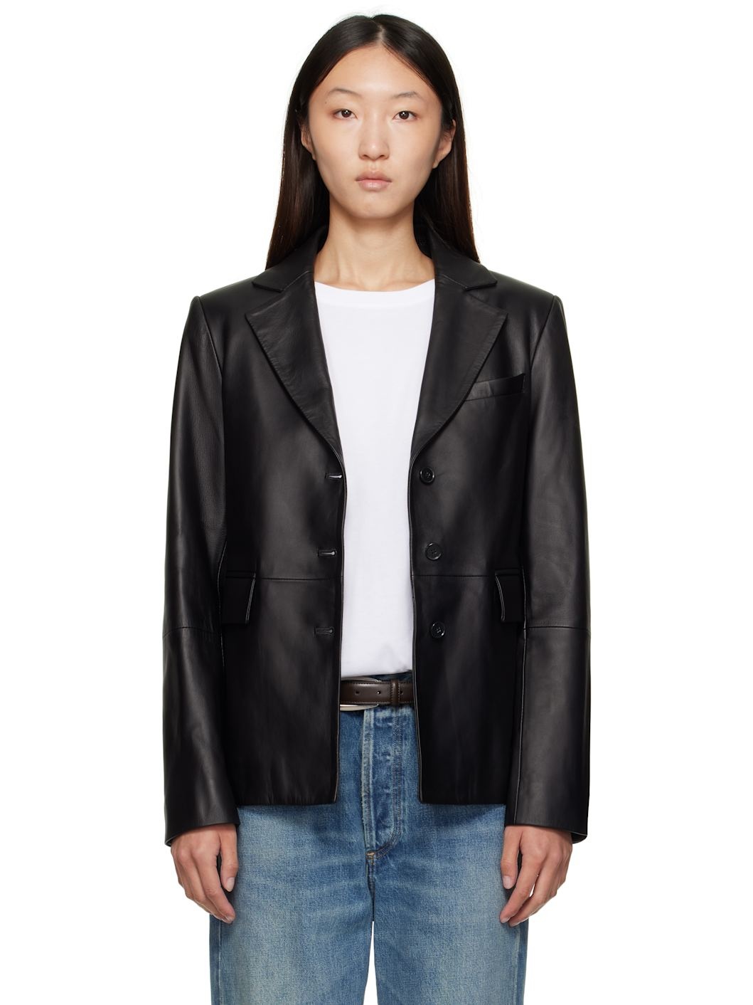 Buffed lambskin jacket. · LWG-certified · Paneled construction · Notched lapel · Button closure · Welt pocket at chest · Flap pockets at waist · Buttoned surgeon's cuffs · Central vent at back hem · Viscose twill lining Supplier color: Black Body: 100% lambskin. Lining: 100% viscose. Made in Turkey 252473F064005