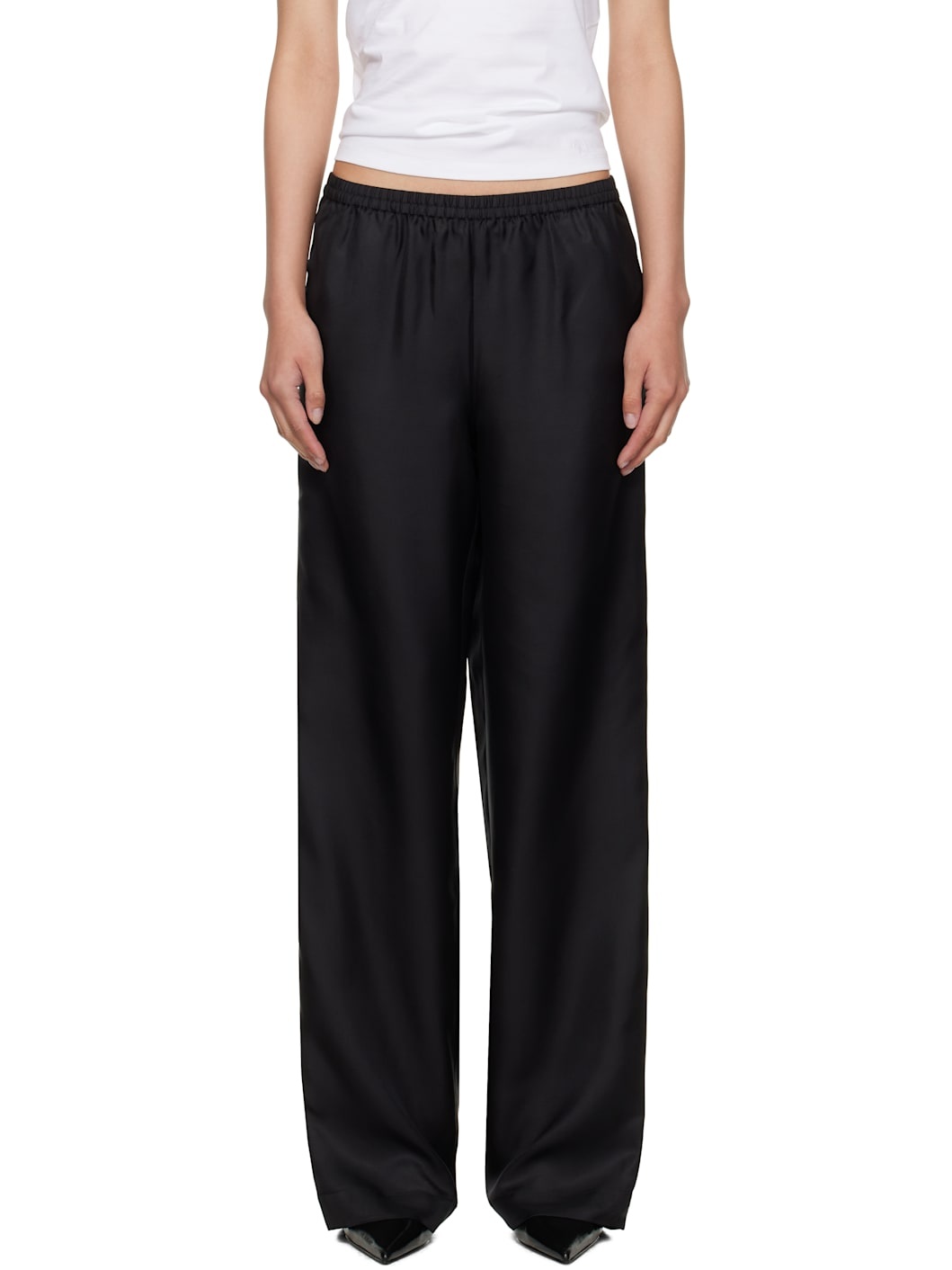 Silk twill trousers. · OEKO-TEX® STANDARD 100-certified · Loose-fit · Mid-rise · Elasticized waistband · Three-pocket styling Supplier color: Black 100% silk. Made in Italy 252473F087009
