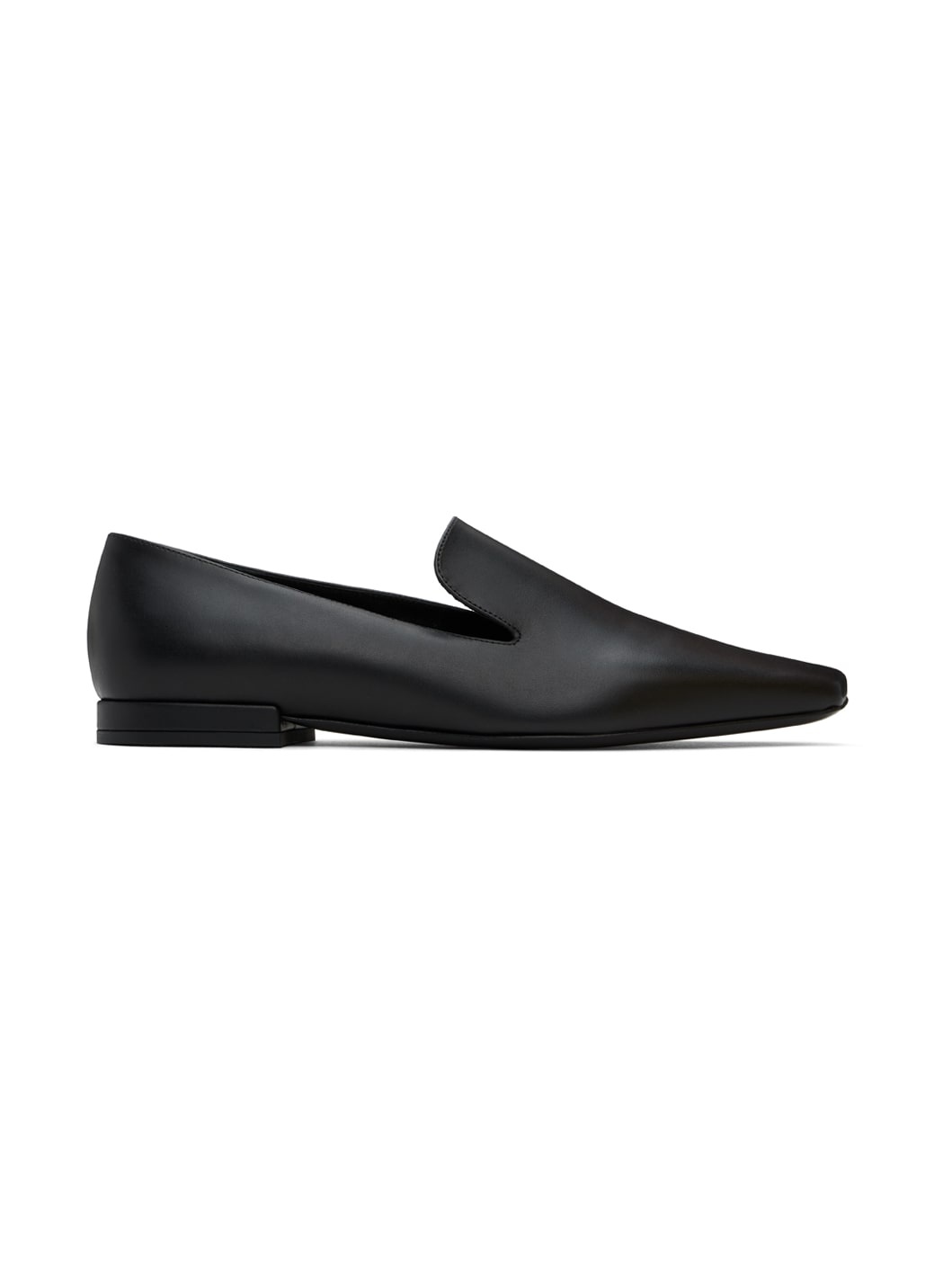 Buffed leather loafers in black. · Square pointed toe · Suede and grained leather lining · Logo embossed at padded leather footbed · Covered heel with rubber injection · Leather sole Supplier color: Black Upper: leather. Sole: leather, rubber. Made in Italy 242473F121001