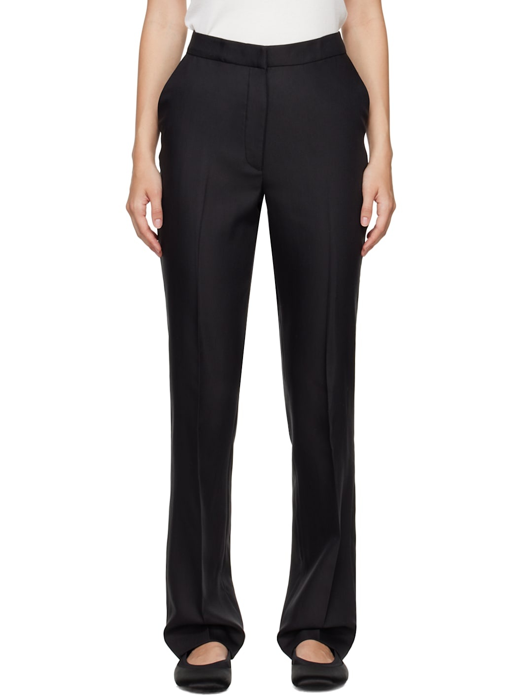OEKO-TEX® STANDARD 100-certified viscose- and wool-blend twill trousers. · Three-pocket styling · Zip-fly · Creased legs Supplier color: Black 50% viscose, 35% wool, 15% mohair. Made in Romania 242473F087004