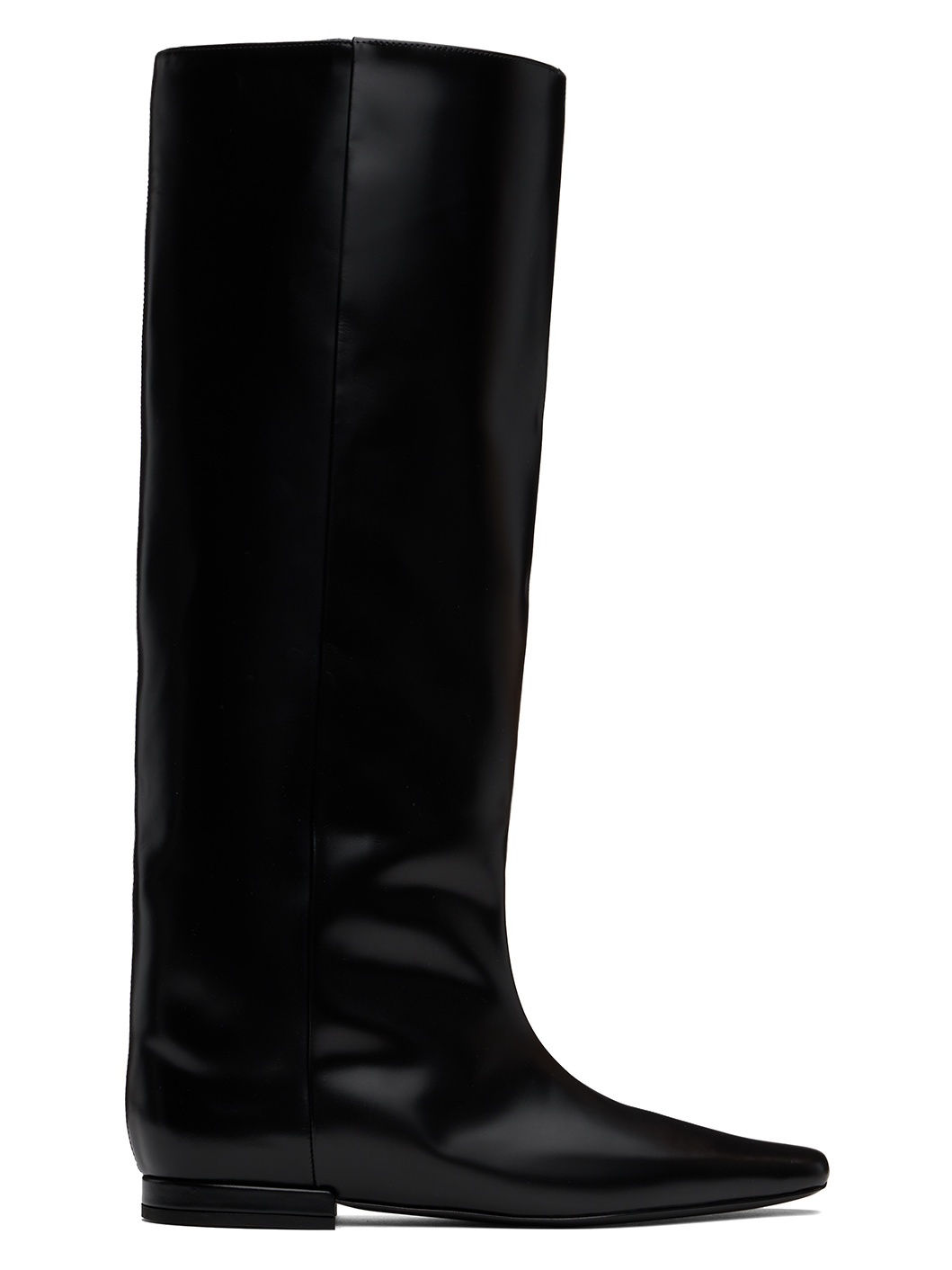 Knee-high buffed leather boots in black. · Pointed square toe · Grained leather lining · Covered block heel with rubber injection · Leather sole Supplier color: Black Upper: leather. Sole: leather, rubber. Made in Italy 242473F115000