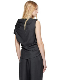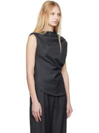 OEKO-TEX® -certified virgin wool delaine blouse. Draping throughout. · Asymmetric boat neck · Curved hem · Concealed zip vent at side seam · Gathering at shoulder · Cap sleeve Supplier color: Black melange 100% virgin wool. Made in Romania 251473F107008