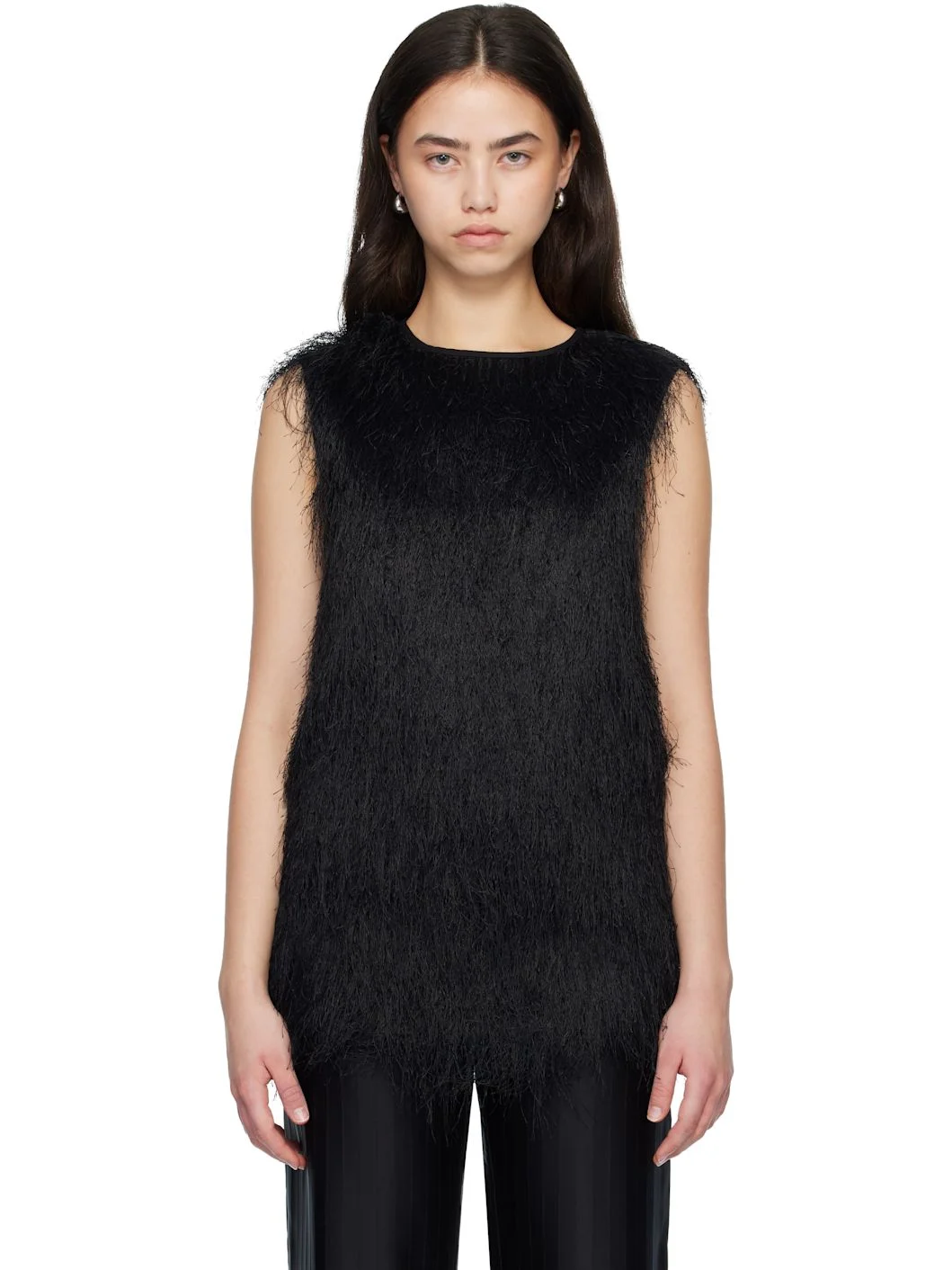 Shag-knit top. · Certified OEKO-TEX® STANDARD 100 · Crewneck · Zip closure at back · Plain-woven cotton lining Supplier color: Black Body: 100% polyester. Lining: 100% cotton. Made in Italy 261473F111005