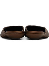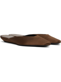 Viscose- and silk-blend satin mules in brown. · Pointed square toe · Logo embossed at padded leather footbed · Grained leather lining · Leather sole with rubber injection Supplier color: Pecan brown Upper: textile. Sole: leather, rubber. Made in Italy 251473F121000