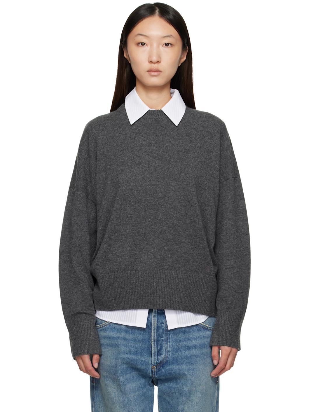 Knit cashmere sweater. · OEKO-TEX® STANDARD 100-certified · Rib-knit crewneck, hem, and cuffs · Dropped shoulders Supplier color: Slate grey 100% cashmere. Made in Italy 252473F096023