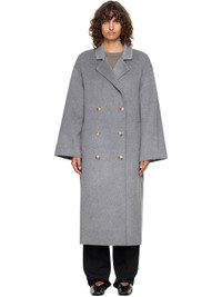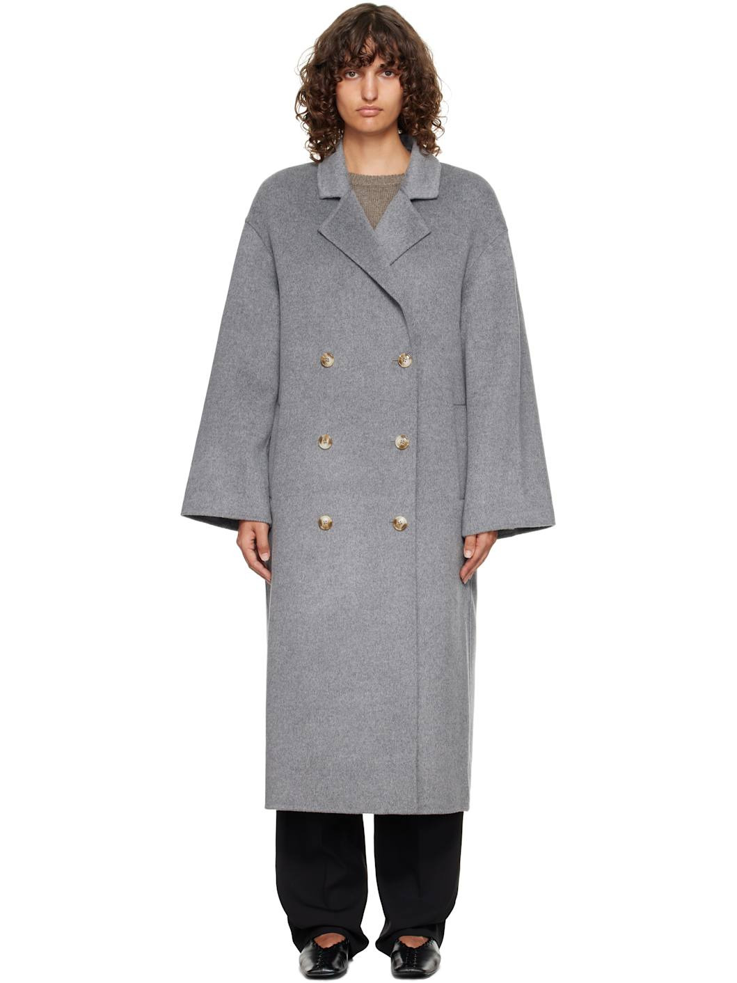 Wool- and cashmere-blend melton coat. · OEKO-TEX® STANDARD 100-certified · Notched lapel · Double-breasted button closure · Welt pockets at waist · Dropped shoulders · Central vent at back hem · Unlined Supplier color: Grey melange 90% wool, 10% cashmere. Made in Italy 252473F059006