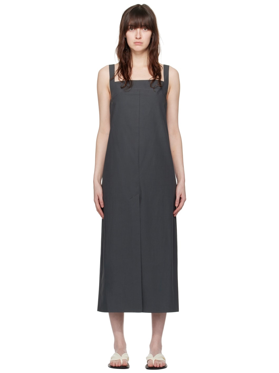 Cotton poplin dress. · Square neck · Central vent at front and back hem · Concealed zip closure at back Supplier color: Iron grey 100% cotton. Made in Romania 241473F054001