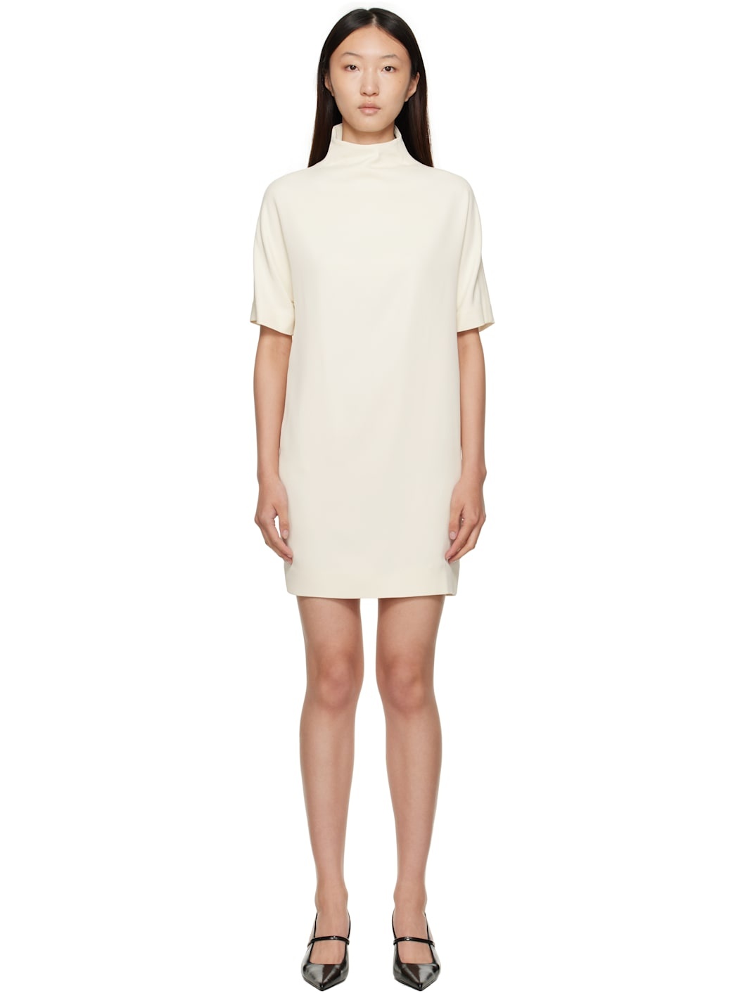 Viscose- and wool-blend twill minidress. · OEKO-TEX® STANDARD 100-certified · Stand collar · Seam pockets · Concealed zip closure at back Supplier color: Ivory Body: 86% viscose, 14% wool. Lining: 100% viscose. Made in Romania 252473F052004
