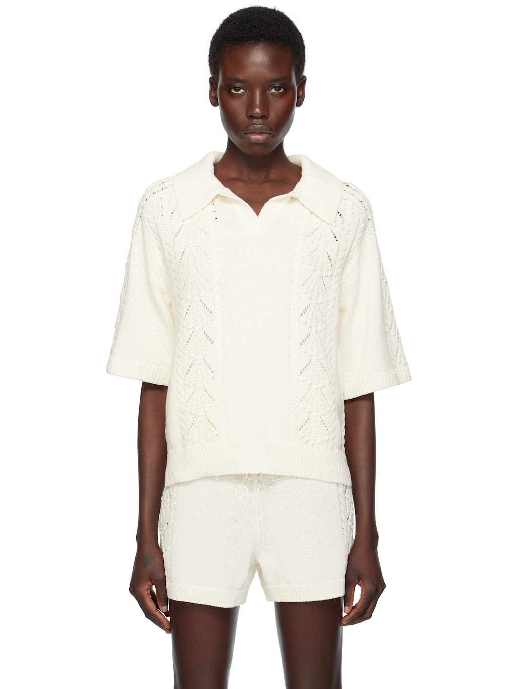 Cable-knit and rib-knit cotton polo. · Certified OEKO-TEX® Standard 100 · Open spread collar · Vented side seams · Dropped shoulders Supplier color: Ivory 100% cotton. Made in Italy 252473F108000