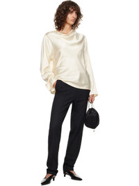 Viscose- and virgin wool-blend satin blouse. · OEKO-TEX® STANDARD 100-certified · Cowl neck · Tuck at shoulder Supplier color: Ivory 93% viscose, 7% virgin wool. Made in Romania 252473F107000