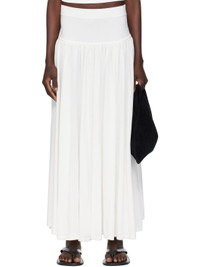 Knit viscose-blend maxi skirt. · Certified OEKO-TEX® Standard 100 · Semi-sheer · High-rise · Elasticized waistband · Gathering at dropped waist Supplier color: Ivory 63% viscose, 37% polyamide. Made in Italy 252473F093000