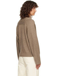 Knit cashmere cardigan. · OEKO-TEX® STANDARD 100-certified · Rib-knit Y-neck, hem, and cuffs · Button closure · Logo embroidered at front hem · Vented side seams · Dropped saddle shoulders Supplier color: Taupe melange 100% cashmere. Made in Italy 252473F095007