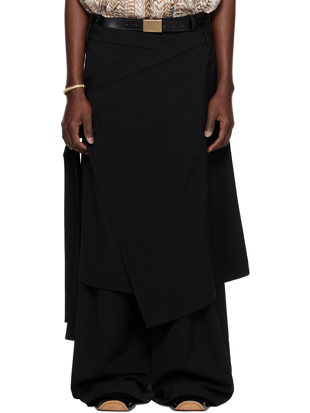 Loose-fit stretch polyester- and virgin wool-blend broken twill skirt. · Wrap construction · Belt loops · Four-pocket styling · Adjustable button closure · Self-tie fastening Supplier color: Black