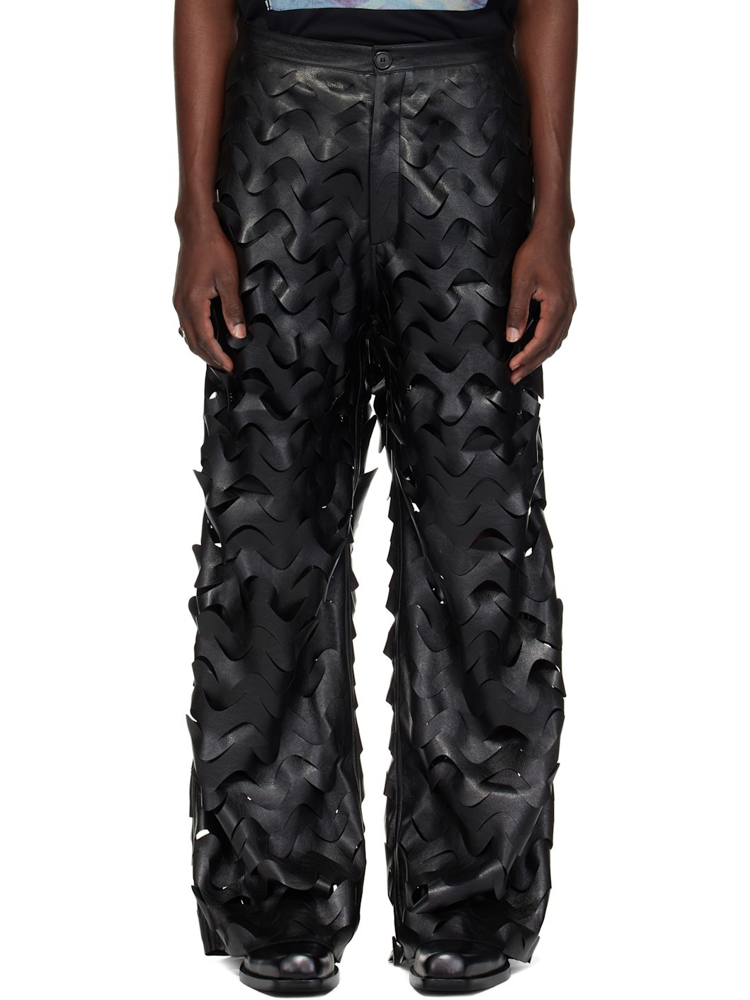 Black Laser Cut Wide-Leg Faux-Leather Pants