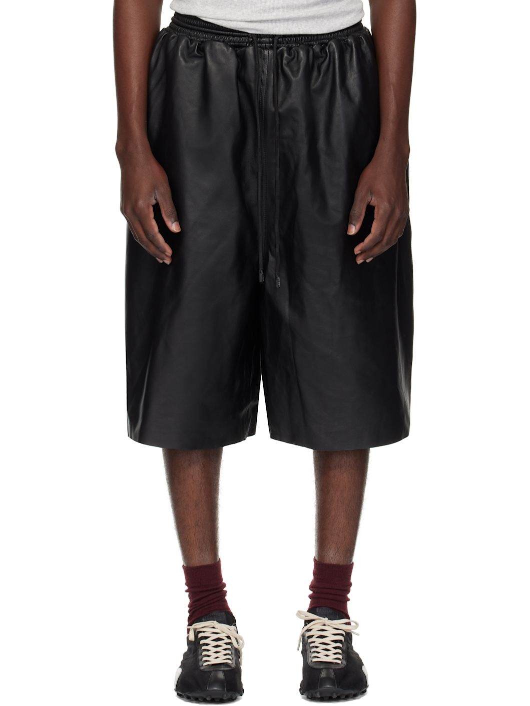 Grained nappa lambskin shorts. · Drawstring at elasticized waistband · Two-pocket styling · Cotton poplin lining Supplier color: Black Body: 100% lambskin. Lining: 96% cotton, 4% elastane. Made in Turkey 252331M193003