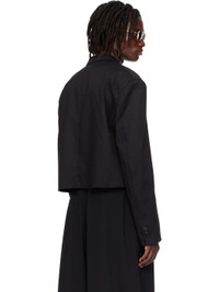 Cotton-blend twill blazer. · Peaked lapel · Single-button closure · Welt pocket at chest · Darts at waist · Raw edge at cropped hem · Buttoned surgeon's cuffs · Central seam at back · Welt pocket at interior · Patterned satin lining Supplier color: Black Body: 65% polyester, 35% cotton. Lining: 100% cupro. Made in Italy 252331M195001