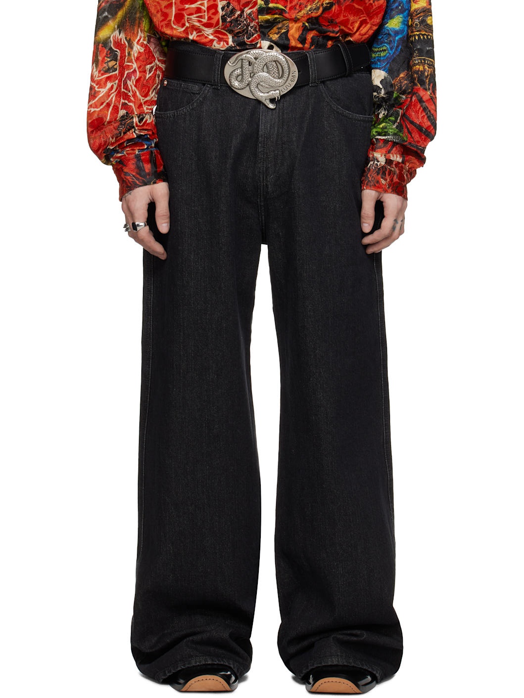 Non-stretch denim jeans. Fading throughout. · Belt loops · Five-pocket styling · Zip fly · Leather logo patch at back waistband · Logo-engraved silver-tone hardware Supplier color: Black Body: 100% cotton. Lining: 50% cotton, 50% polyester. Made in Italy 251331M186008