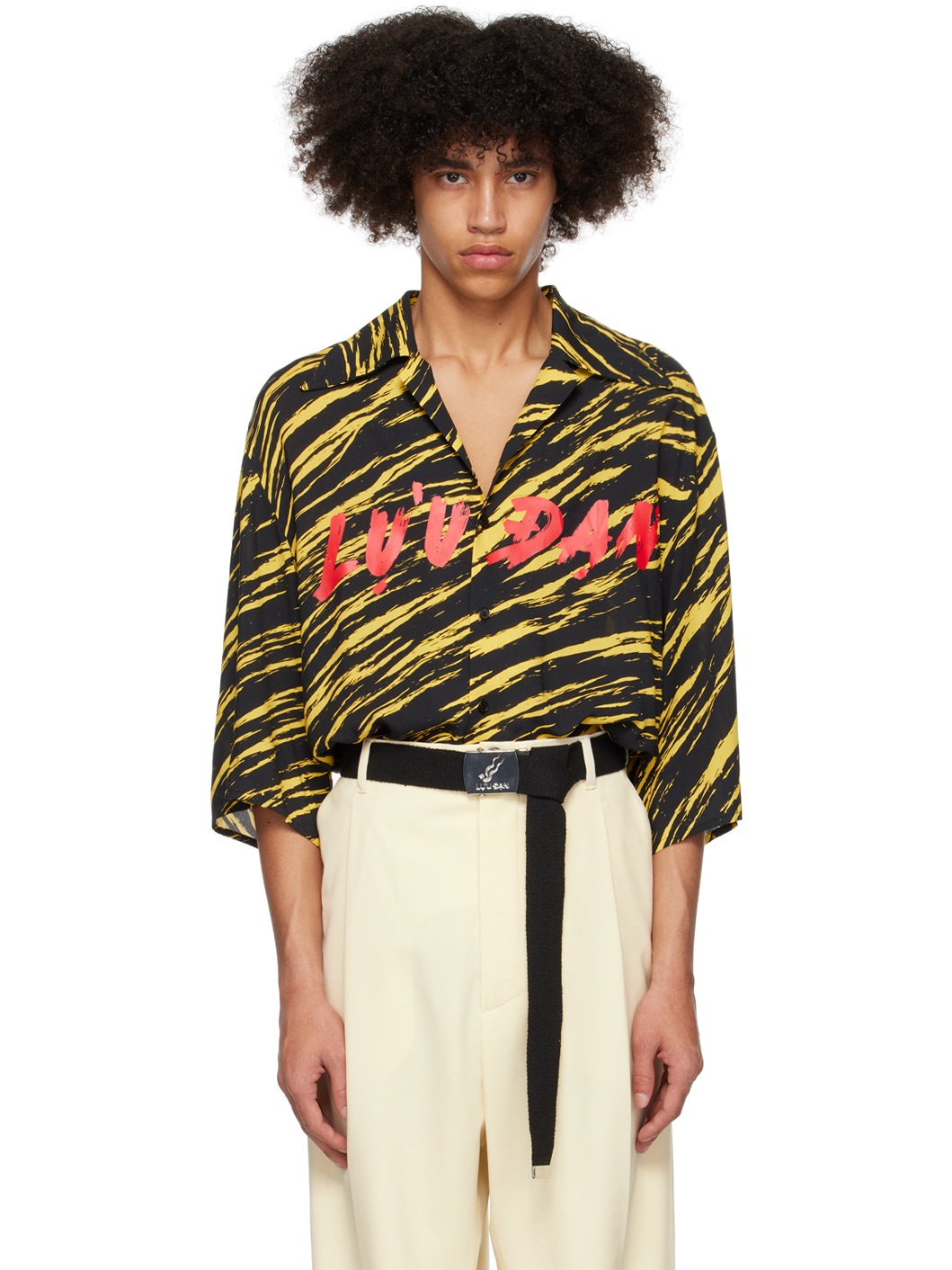 Semi-sheer plain-woven EcoVero™ shirt. Graphic pattern printed throughout. · Open spread collar · Button closure · Logo printed at chest · Textile logo patch at front hem · Vented side seams Supplier color: Tiger stripes print 100% ecovero. Made in Portugal 231331M192008