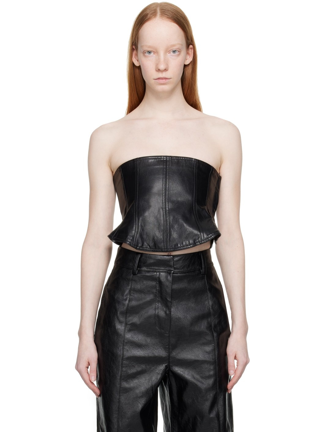 Grained faux-leather corset. Boning throughout. · Straight neck · Zip closure at side seam · Criss-crossing self-tie closure at back · Full satin lining Supplier color: Black Body: 65% polyurethane, 32% rayon, 3% nylon. Lining: 52% viscose, 48% polyester. Made in South Korea 231428F368000