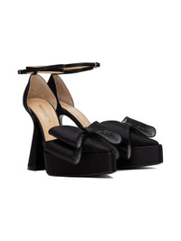 Satin heels in black. · Pointed toe · Crystal-cut bow accent at vamp · Adjustable wraparound pin-buckle ankle straps · Logo stamped at padded footbed · Covered platform midsole · Covered block heel with rubber injection · Leather outsole · Platform: H1.25 in · Heels: H5 in Supplier color: Black