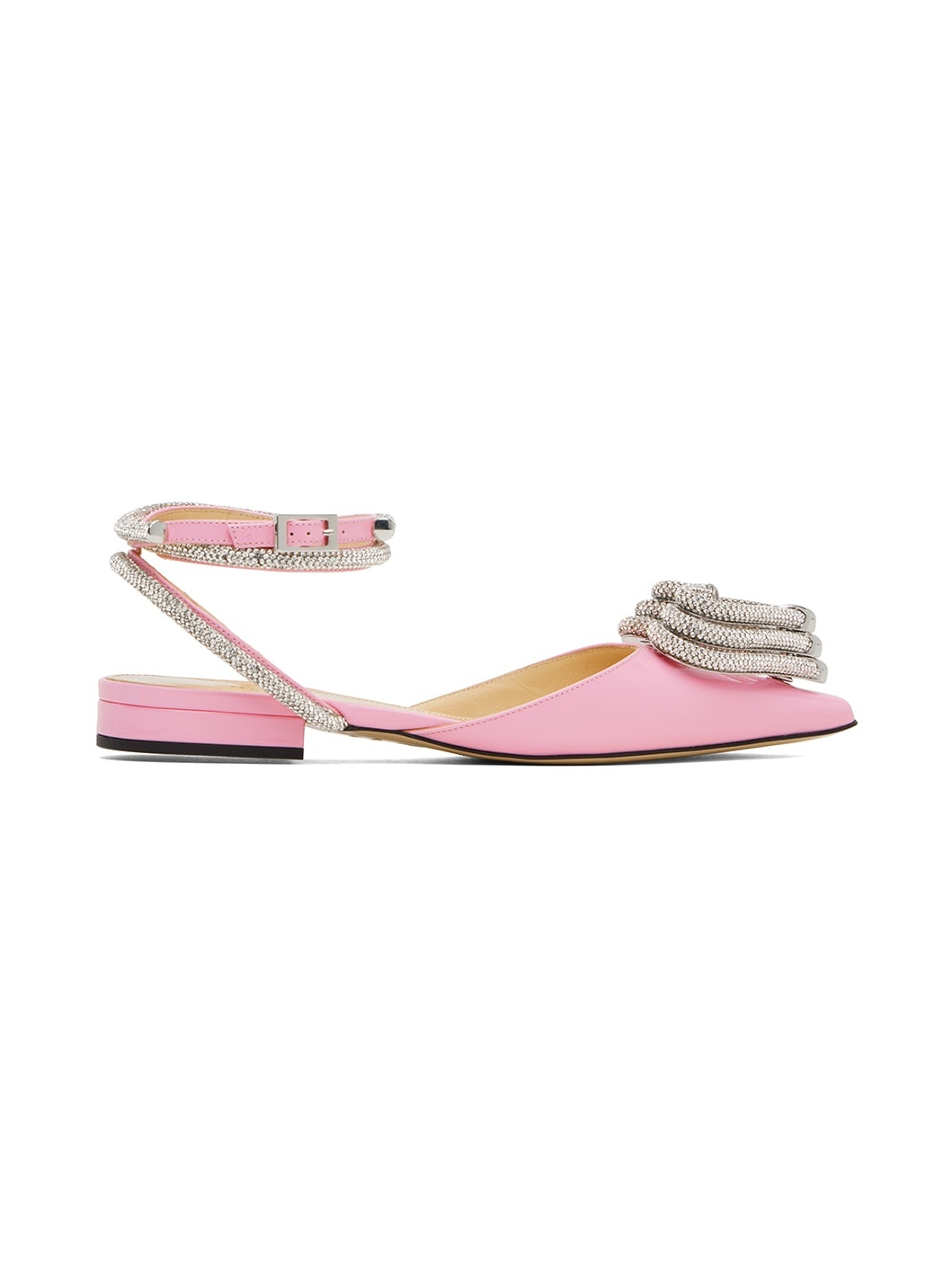 Patent leather slippers in pink. · Hardware with crystal-cut accents throughout · Pointed toe · Graphic hardware at vamp · Wraparound pin-buckle ankle strap · Buffed leather lining · Covered heel with rubber injection · Leather sole Supplier color: Pink Upper: textile. Sole: leather, rubber. Made in Italy 241404F121003