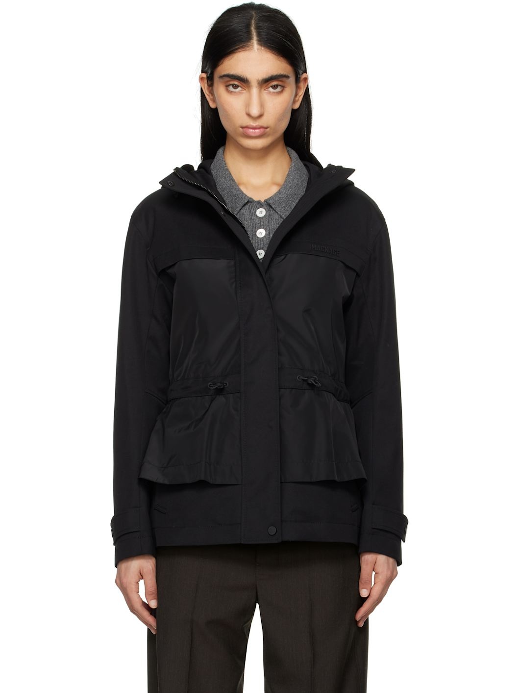 Polyester- and cotton-blend gabardine and recycled polyester taffeta jacket. · Water-resistant · Paneled construction · Bungee-style drawstring at hood · Stand collar · Logo bonded at chest · Welt pockets and drawstring at waist · Peplum hem · Press-stud tab at cuffs · Zip pocket at interior · Full cotton poplin lining Supplier color: Black Body 1: 65% polyester, 35% cotton. Body 2: 100% recycled polyester. Lining: 100% cotton. Made in Bosnia And Herzegowina 251015F063009