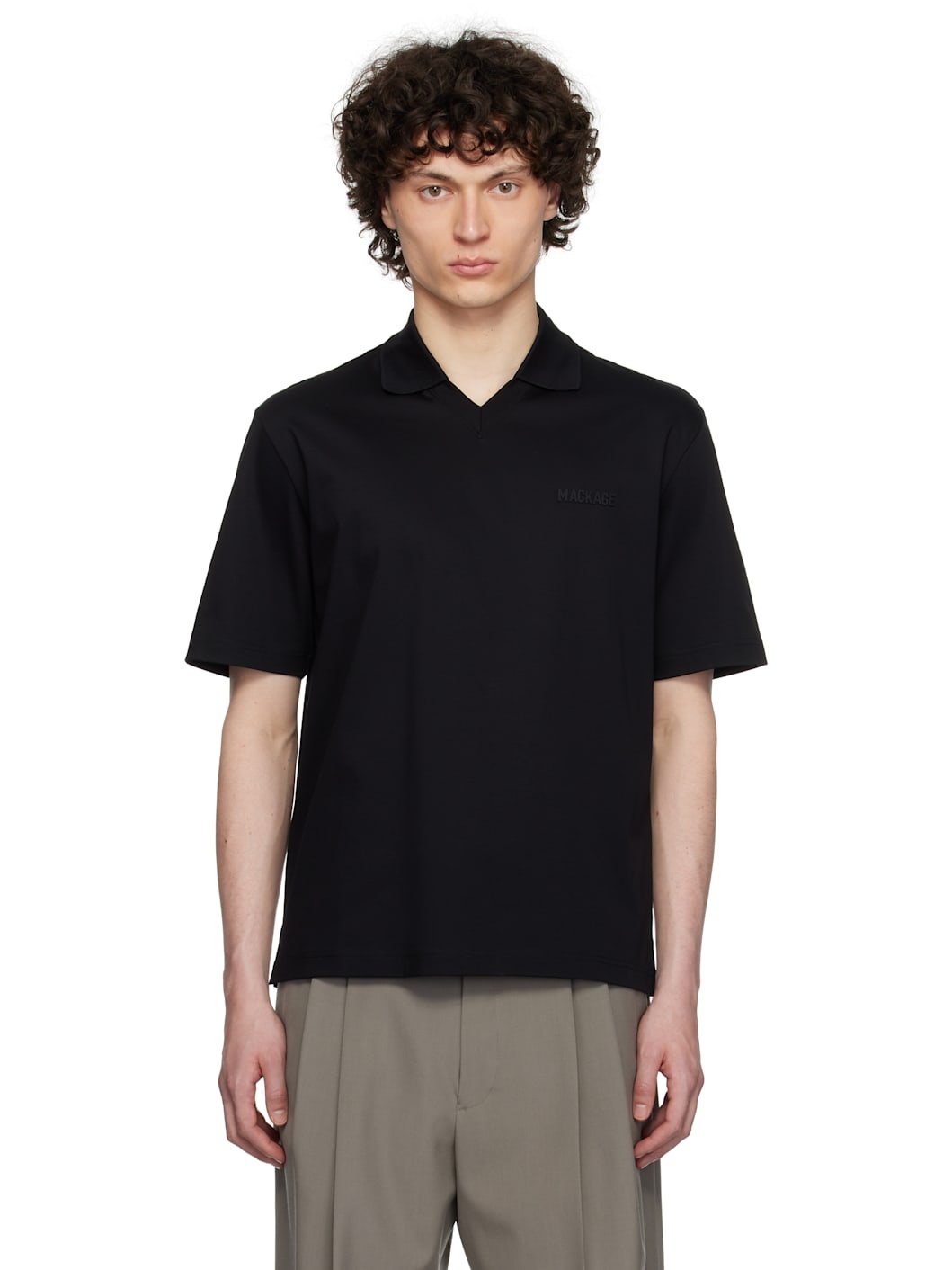 Loose-fit organic cotton pique polo. · Rib-knit spread collar at V-neck · Logo bonded at chest · Vented side seams Supplier color: Black 100% organic cotton. Made in Portugal 251015M212001