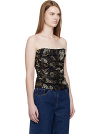Silk chiffon top. · Ruching and boning throughout · Floral pattern printed throughout · Straight neck · Concealed zip closure at back · Integrated bra with lace detailing at interior · Stretch silk lining Supplier color: Black Body: 100% silk. Lining: 90% silk, 10% elastane. Made in Poland 252533F111004