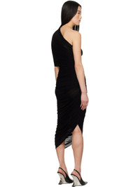 Sheer stretch cupro jersey midi dress. Includes single-shoulder bodysuit. · Draping and ruching throughout · Single-shoulder construction · Asymmetric hem · Concealed zip closure at side seam Supplier color: Black 92% cupro, 8% elastane. Made in Poland 251533F054004