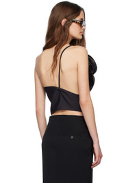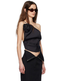 Wool- and silk-blend organza top. Draping and integrated wire throughout. · Single-shoulder construction · Floral applique at asymmetric neck · Cropped hem · Button placket at side seam · Fixed spaghetti strap Supplier color: Black 60% wool, 40% silk. Made in Poland 251533F111011