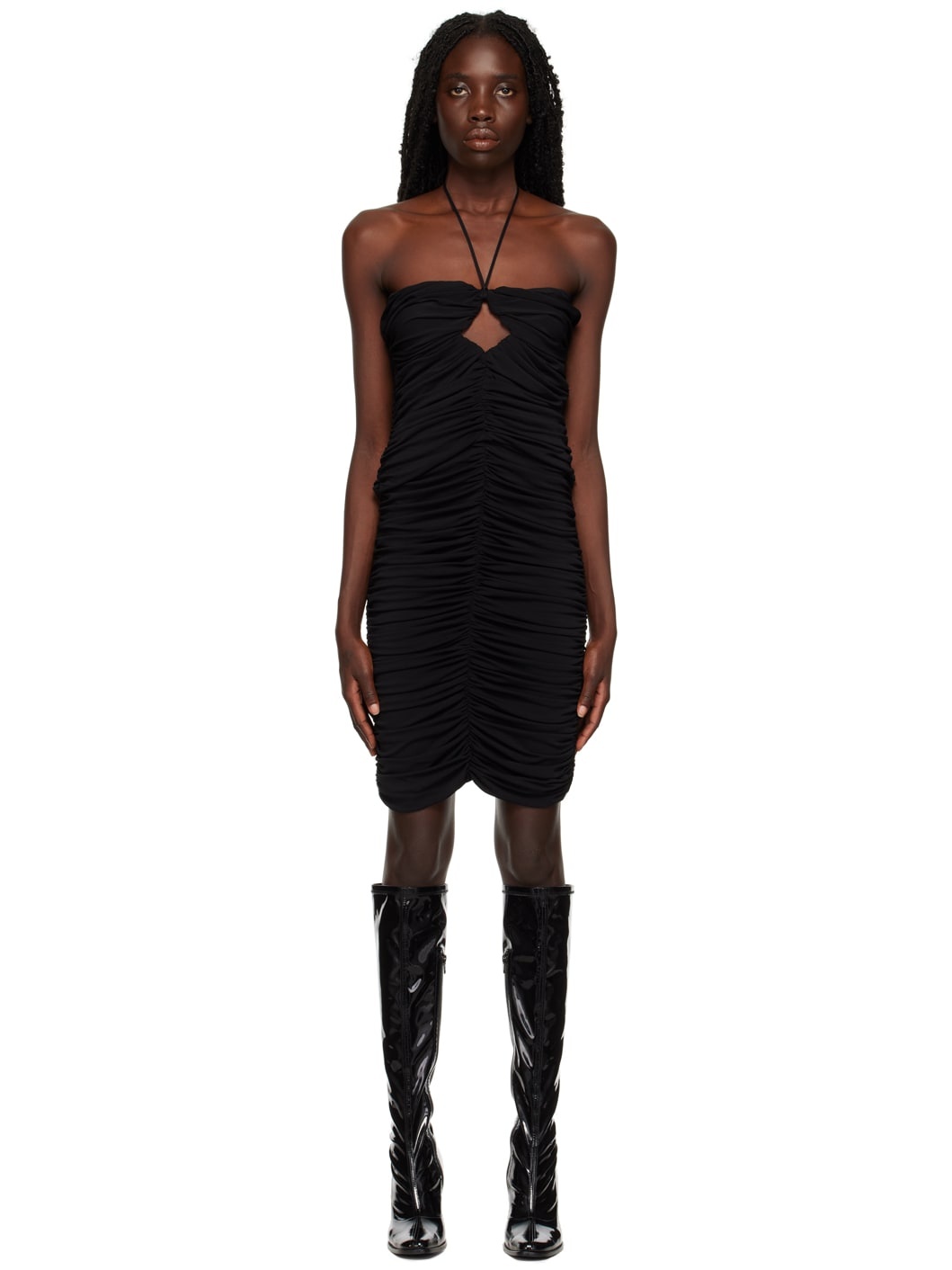 Stretch viscose-blend jersey dress. Ruching throughout. · Cutout at front · Halter strap · Zip closure at back Supplier color: Black 63% viscose, 24% polyester, 13% elastane. Made in Poland 222533F054000