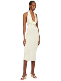 Grained calfskin slip-on heeled sandals in off-white. · Open almond toe · Floral applique at thong-style strap · Logo embossed at padded footbed · Covered wedge heel with rubber injection · Calfskin nubuck sole · Heel: H3" Supplier color: Cream Calfskin. Made in Italy 241533F125007