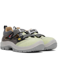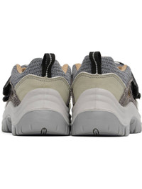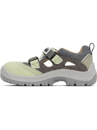 Low-top canvas and mesh Mary Jane-style sneakers in green and gray. · Encased metal toe · Perforations at vamp · Logo patches at velcro straps · Padded tongue and collar · Cutouts at sides · Reflective pull-loop at heel · Mesh lining · Foam rubber midsole · Oil-resistant lugged rubber sole Part of the Magliano x U-Power collaboration. Supplier color: Light mix Upper: textile. Sole: rubber. Made in Italy 251516M237002