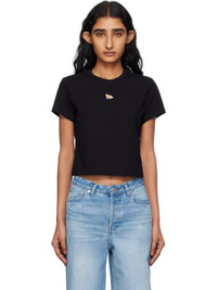 Cotton jersey T-shirt. · Rib-knit crewneck · Embroidered logo patch at chest · Cropped hem Supplier color: Black 100% cotton. Made in Portugal 252389F110005