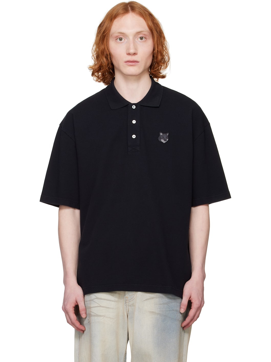 Cotton pique polo. · Ribbed jersey spread collar · Three-button placket · Embroidered logo patch at chest · Tennis-tail hem Supplier color: Black 100% cotton. Made in Portugal 251389M212006