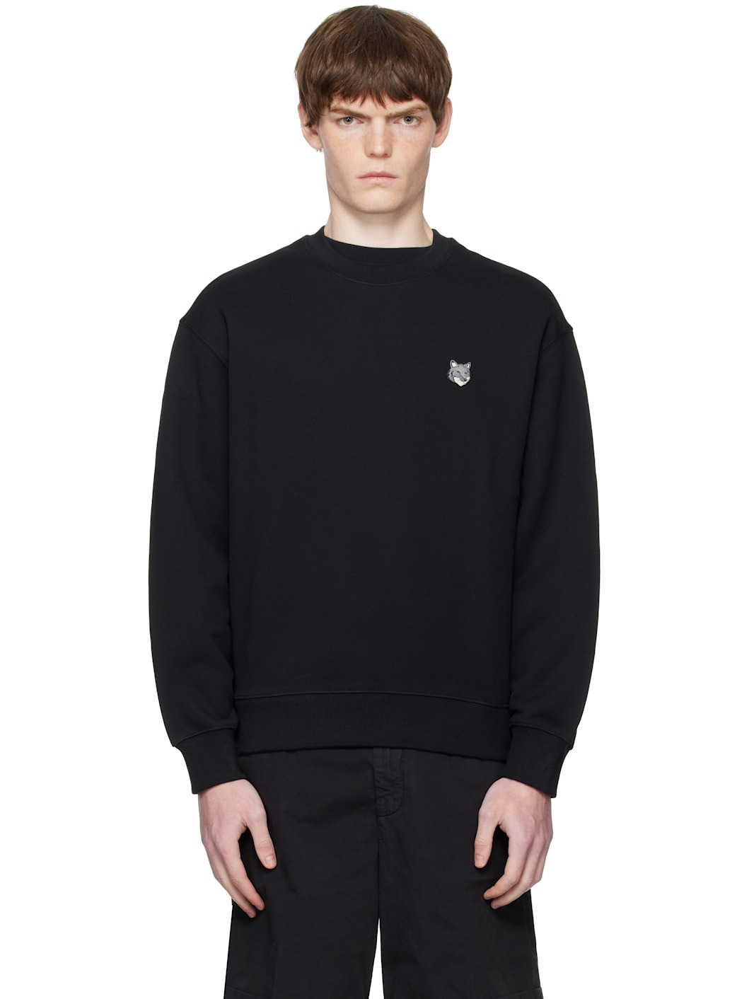 Cotton French terry sweatshirt. · Rib-knit crewneck, cuffs, and hem · Logo patch embroidered at chest Supplier color: Black Body: 100% cotton. Trim: 98% cotton, 2% elastane. Made in Portugal 252389M204008