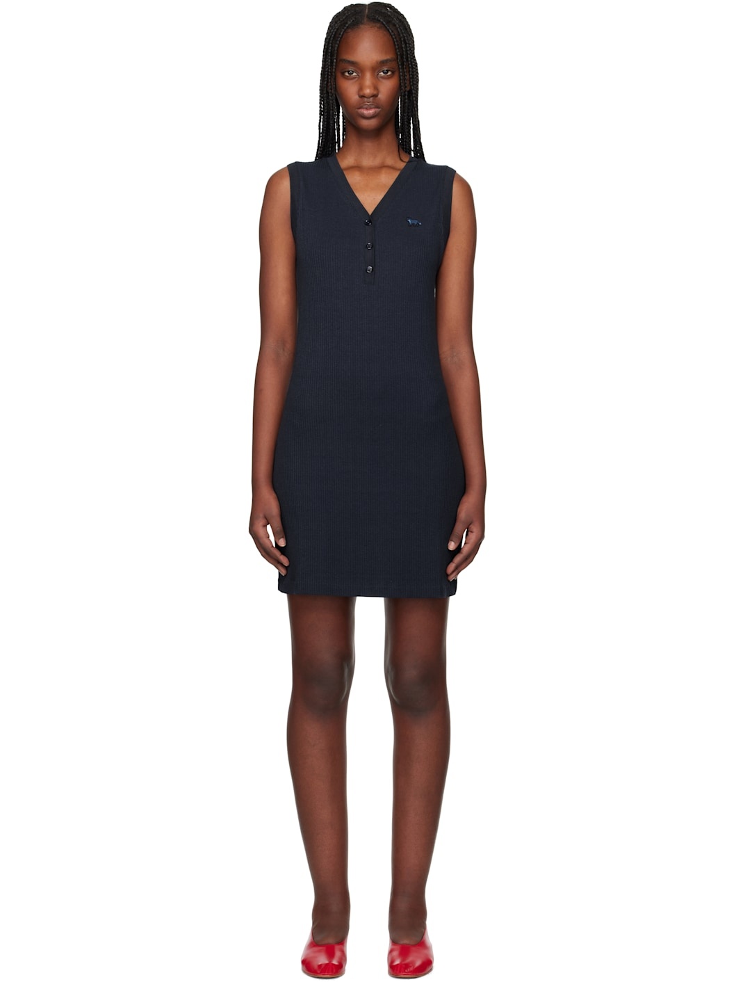 Stretch lyocell- and cotton-blend ribbed jersey minidress. · V-neck · Three-button placket · Embroidered logo graphic patch at chest Supplier color: Ink blue 64% lyocell, 32% cotton, 4% elastane. Made in Portugal 251389F052001