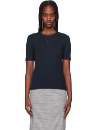 Rib-knit stretch lyocell- and cotton-blend T-shirt. · Crewneck · Embroidered logo graphic patch at chest Supplier color: Ink blue 64% lyocell, 32% cotton, 4% elastane. Made in Portugal 251389F110017