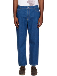 Tapered non-stretch denim jeans. · Belt loops · Five-pocket styling · Button fly · Logo patch at back waistband · Contrast stitching in tan Supplier color: Washed indigo 100% cotton. Made in Tunisia 261389M186001