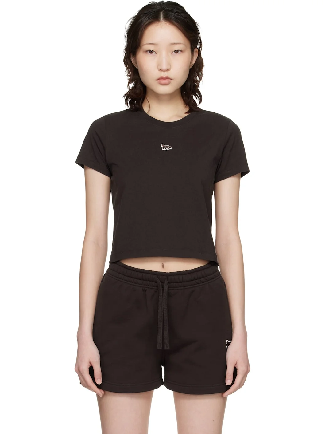 Organic cotton jersey T-shirt. · Rib-knit crewneck · Embroidered logo patch at chest · Cropped hem Supplier color: Ganache 100% organic cotton. Made in Portugal 261389F110031